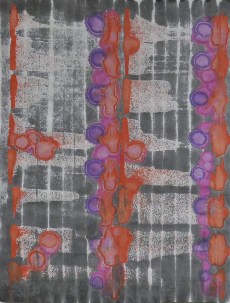 Die Tuschezeichnungen der Reihe „Alarm! Signale – Warnungen und Tendenzen“ von 2022 sind zu verschiedenen Signaltönen, die unseren Großstadtalltag einnehmen, entstanden. Linien, Farben, Formen und deren rhythmitisierte Verbindung dienen mir als Balancemittel zur heutigen, extremen Zeit.