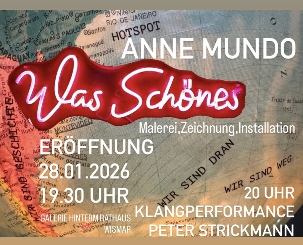 Zu der Ausstellung mit einer Eröffnungsrede zur „Schönheit“ am 28. Januar 2026, 19 Uhr, und einer musikalischen Aktion von Peter Strickmann um 20 Uhr, laden wir Sie herzlich ein.