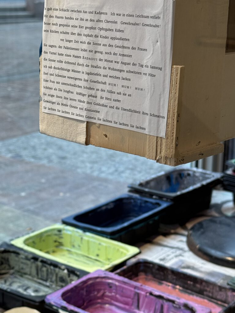 Schaufenster-Installation „Was Schönes“ (aus „LOST & FOUND, (Sculpture No.3) in Erinnerung an die Empathie der Menschen gegenüber den Menschen – und an Etel Adnan“)