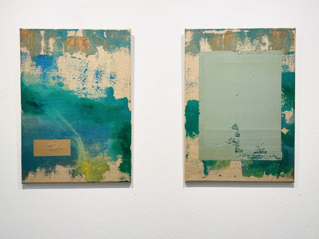 2) „Grüne Erde, Laubgrün, Schiefergrau“, mixed media on canvas, 120 x 150 cm, 2025